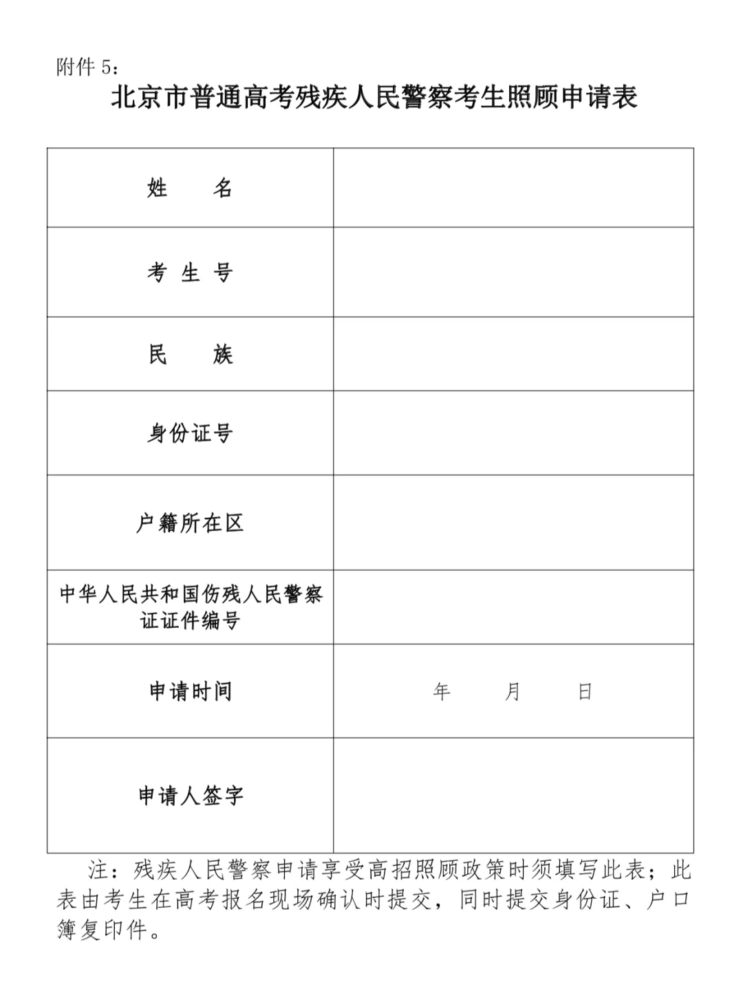 9.残疾人民警察须在高考报名现场确认时填写申请表(附件5)并提交身份证、户口簿复印件,由市退役军人事务局审核。