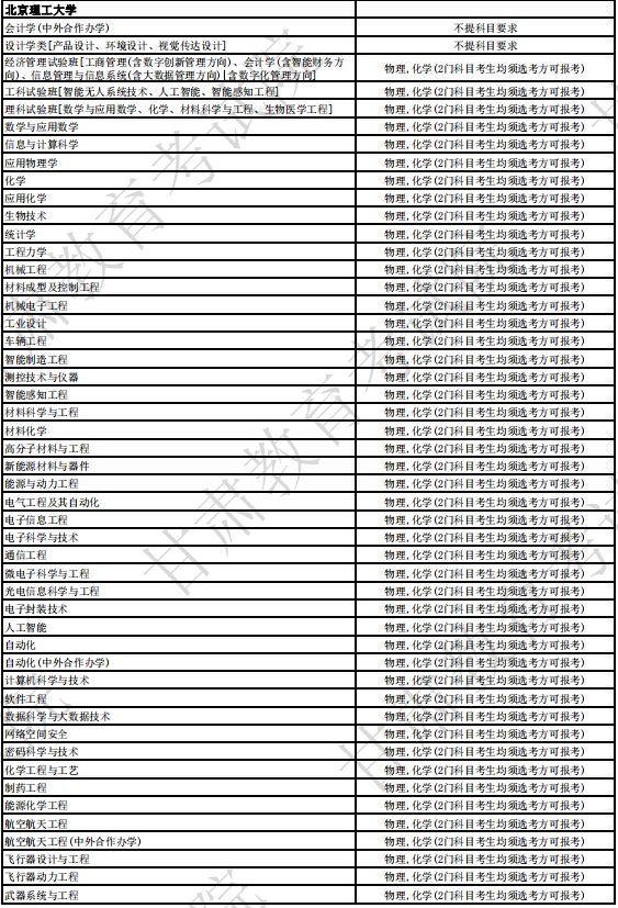 10007 | 北京理工大学 | 电气工程及其自动化 | 本科 | 物理,化学(2门科目考生均须选考方可报考) | ||