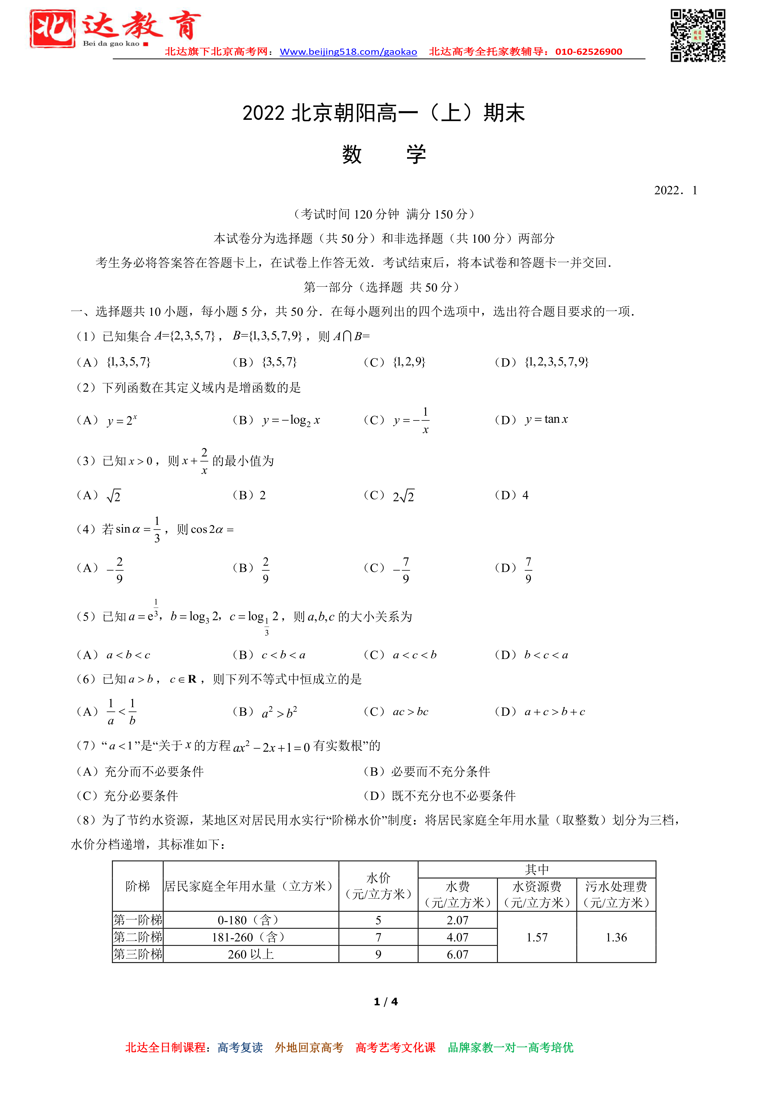 北京各区高一上学期期末考试时间已确定为1月12日-14日,北京各区2022年高一上学期期末考试结束之后,北达教育教研组将整理相关试题,同学们可以直接下载相关试题及答案。