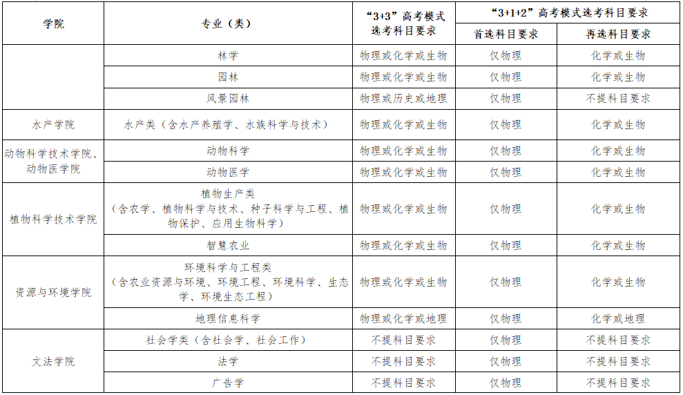 非高考综合改革省份全部为理科;高考综合改革省份考生选考科目需符合所报专业选考科目要求,实行“3+1+2”高考模式的省份要求首选科目为物理,招生专业及选考科目要求。