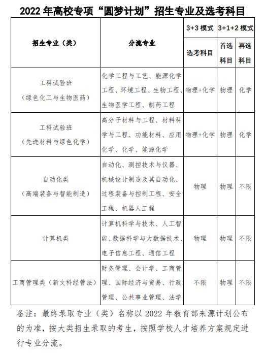 1.获得北京化工大学高校专项“圆梦计划”招生资格考生(以下简称“入选考生”)须参加高校招生全国统一考试,且应在入选考生所在省份学校公布的高校专项“圆梦计划”招生专业范围内填报专业志愿,填报方式、填报时间等以生源地省级招生考试机构规定为准。