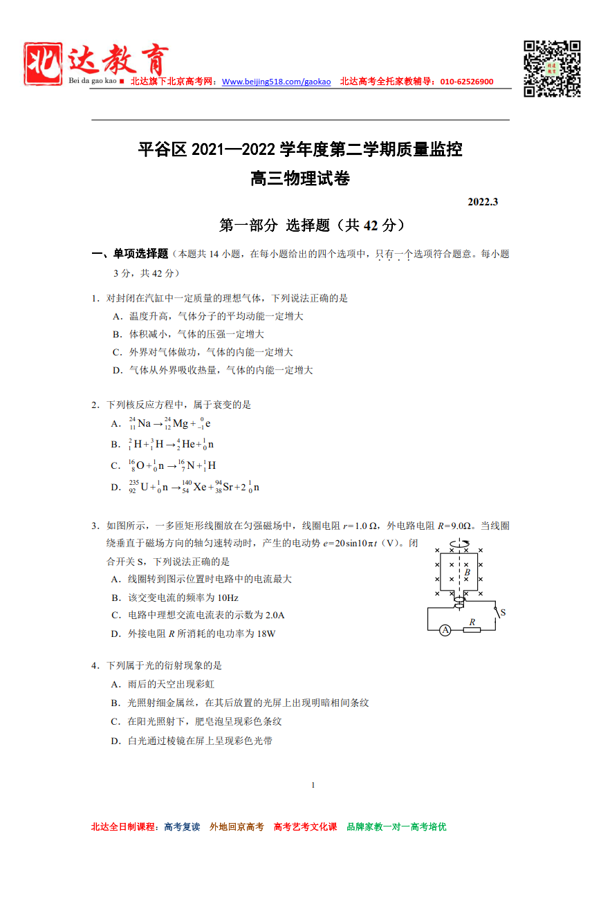 根据安排,3月28日-30日,2022年北京平谷区举行高三一模考试,一模在形式和题量上更接近高考,因此同学们要格外重视,为了方便同学们下载复习,北京高考复读学校跟进相关试题,详情如下。北达高考复读、高考…