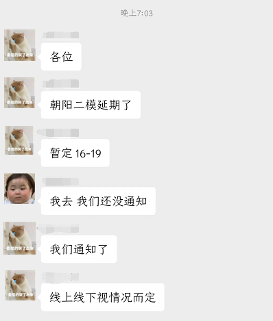 根据考生分享,朝阳区二模考试暂定5月16日,具体以学校通知为主,暂未确定线上还是线下考试。