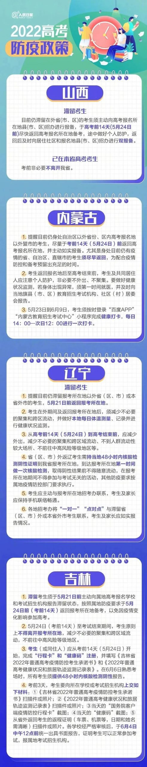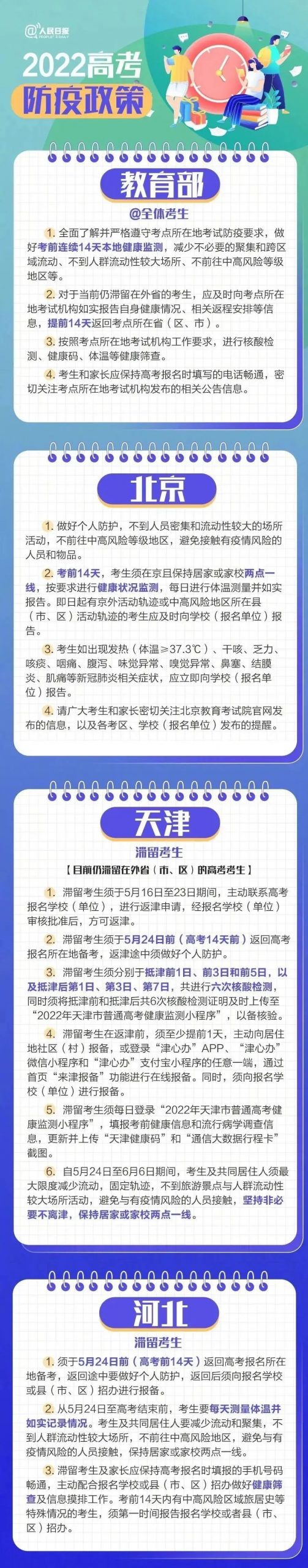 近日,人民日报发布了31个省区市高考防疫政策汇总,北京北达教研组为大家整理了内容详情,一起来看。