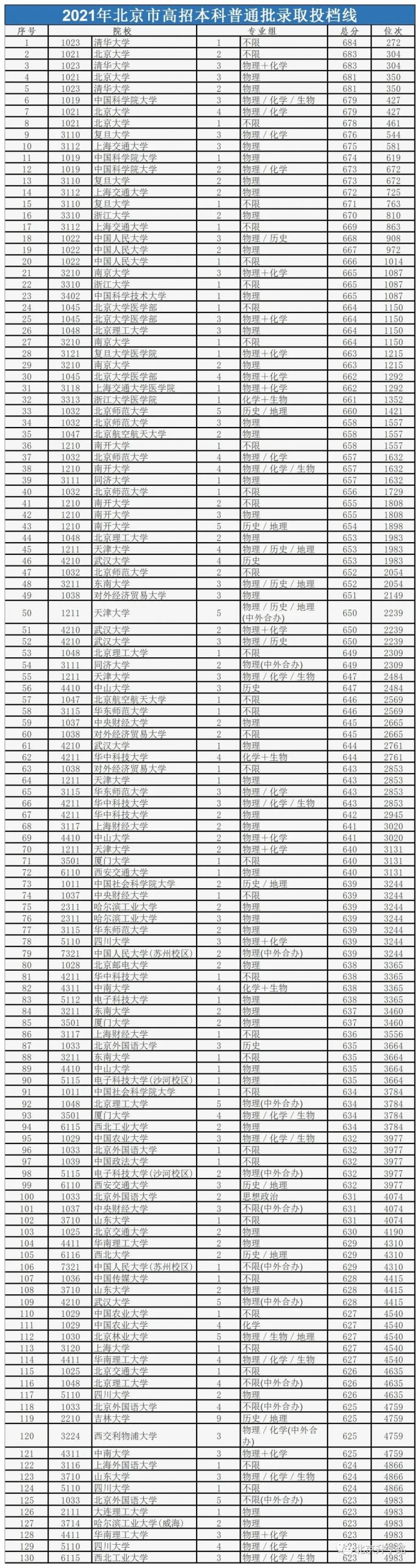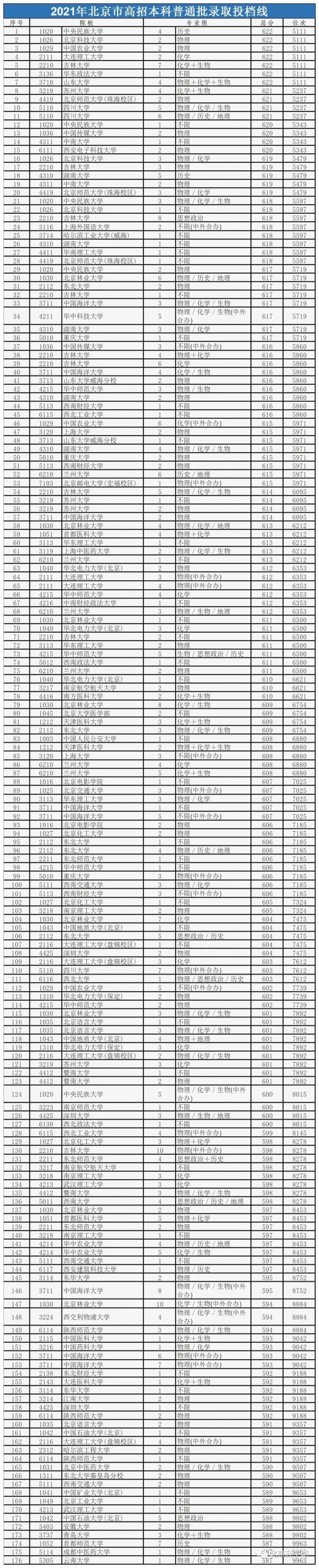 下表为2021年北京高考提前批普通A段和本科普通批录取分数线对应排名在5000以内的录取数据。2022届高考生志愿填报时可以参考。