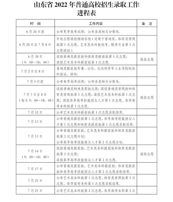 山东省2022年高考录取时间安排