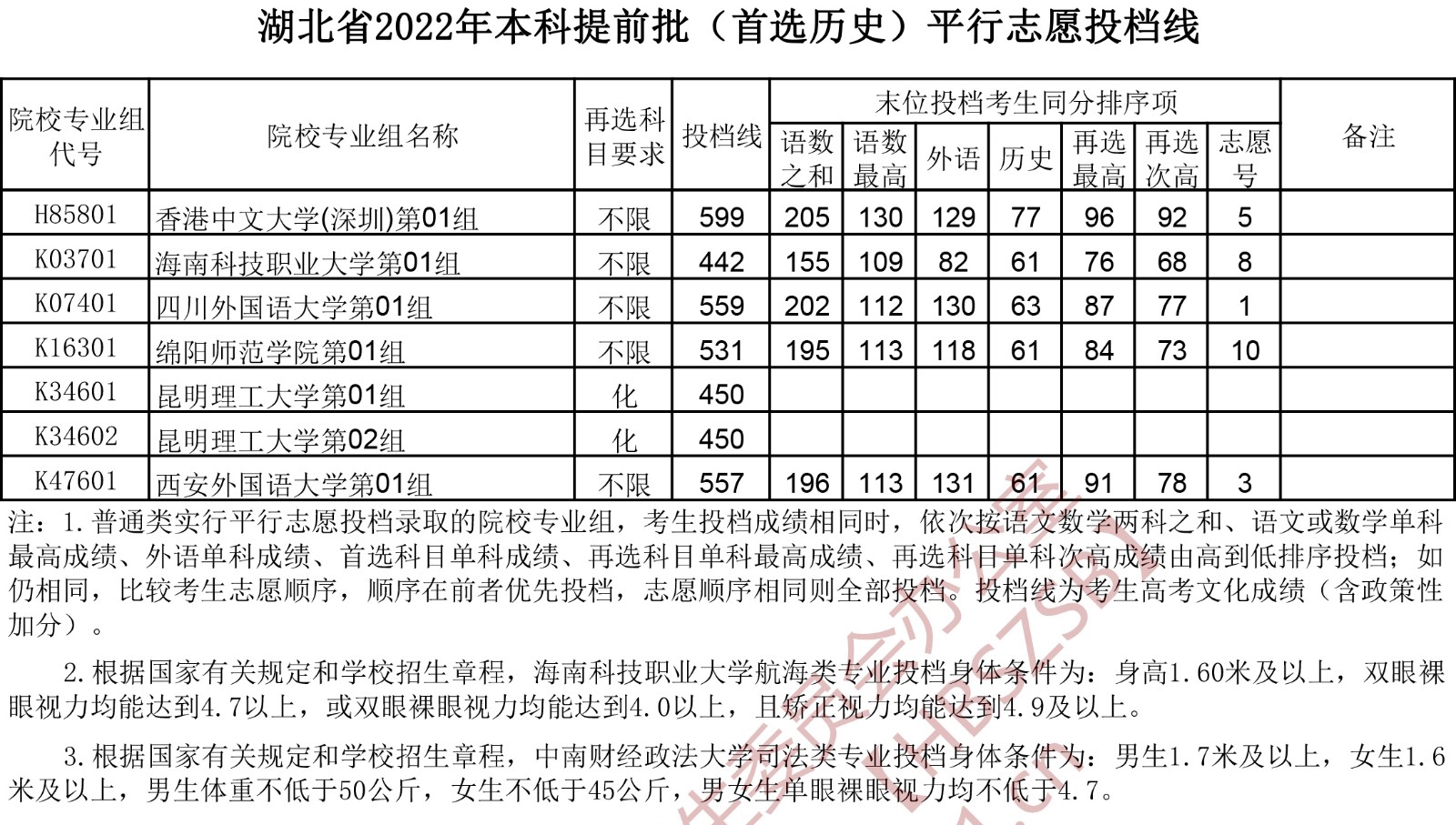 湖北省2022年本科提前批平行志愿投档线(首选历史)公布。北京北达教研组为大家整理了内容详情,一起来看。