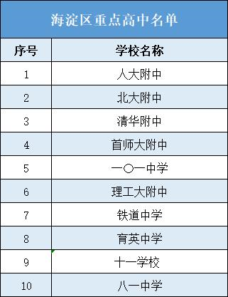 北京市海淀区2022年重点高中排名