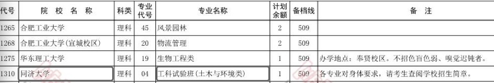 并且,在此后公布的河南一本补录的院校专业名单中,同济大学工科试验班(土木与环境类)、吉林大学土木类专业计划赫然在列,