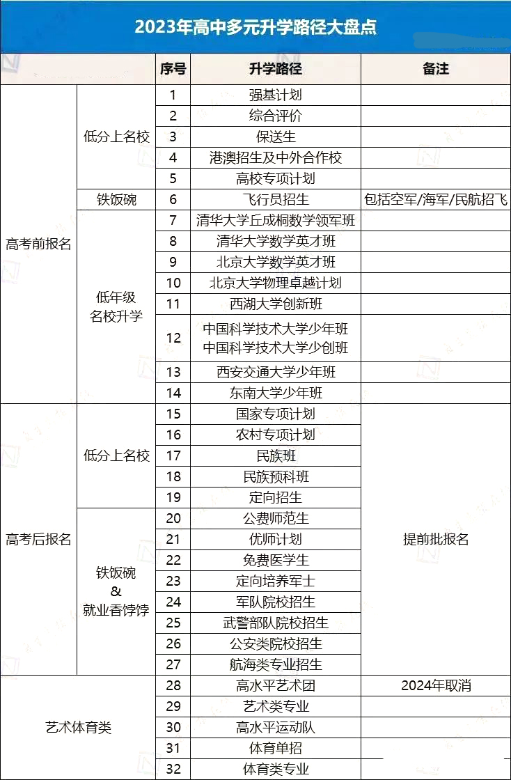 目前,除普通高考外,高中生上大学的路径还有20多条,北京北达教研组汇总各升学路径如下,供各位考生家长参考: