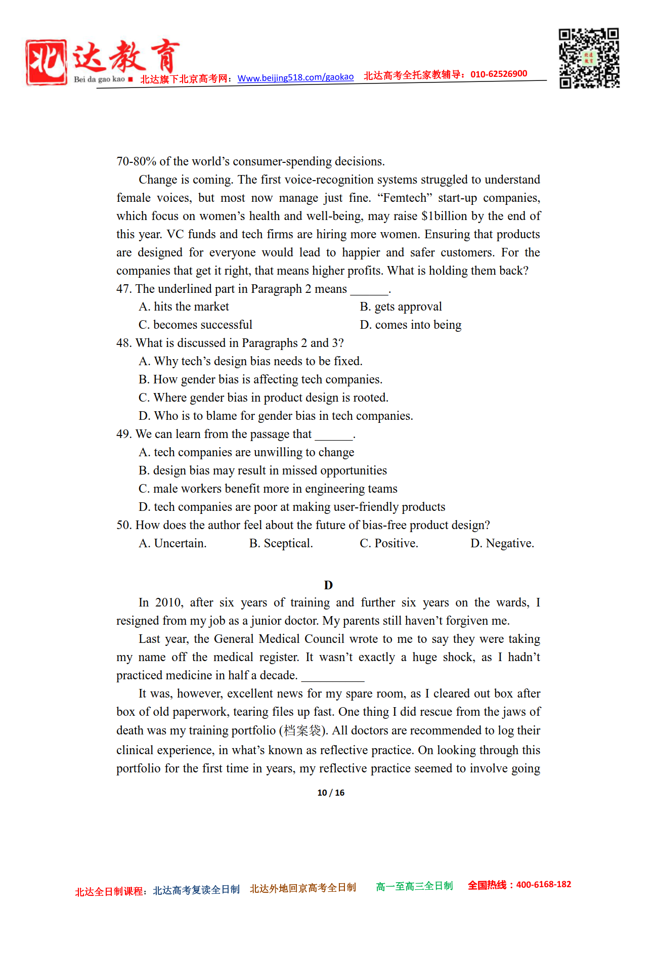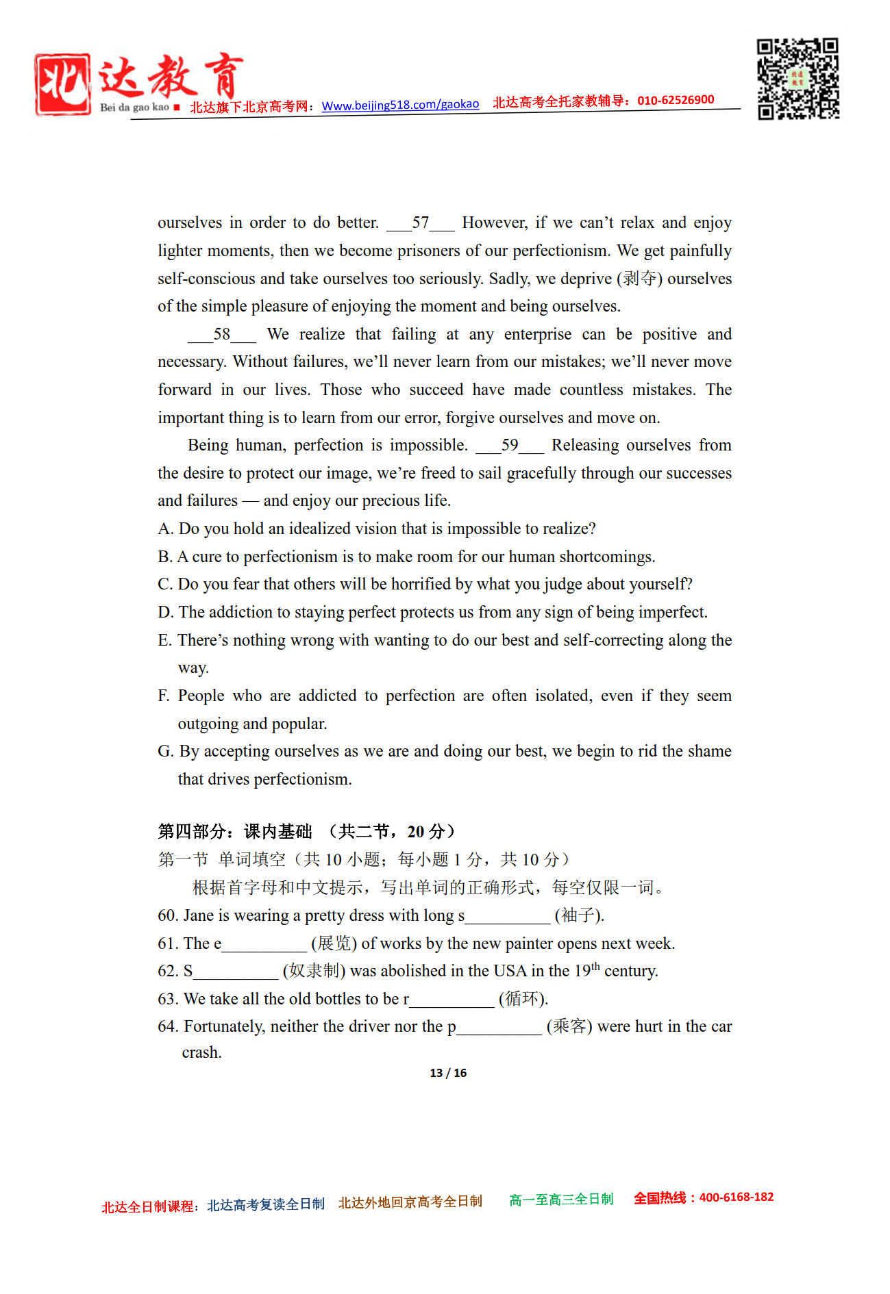 北京北达教研组为大家整理了2022-2023北京北师大实验中学高三上学期开学摸底考英语试题,一起来做做看吧。
