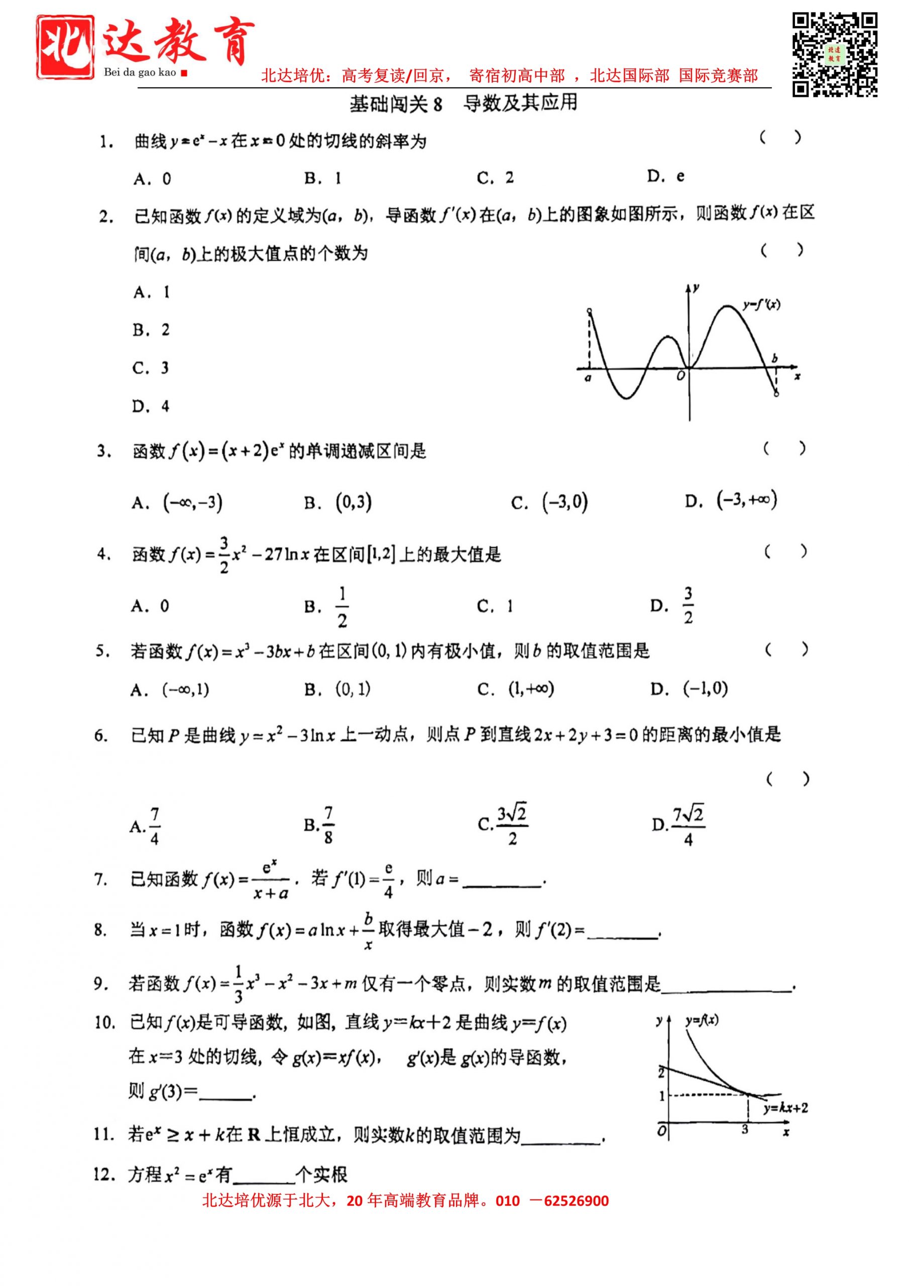 今天,北京北达教研组为大家整理了2022年北京人大附中高三数学课后练习(基础闯关8导数及其应用),一起来看。