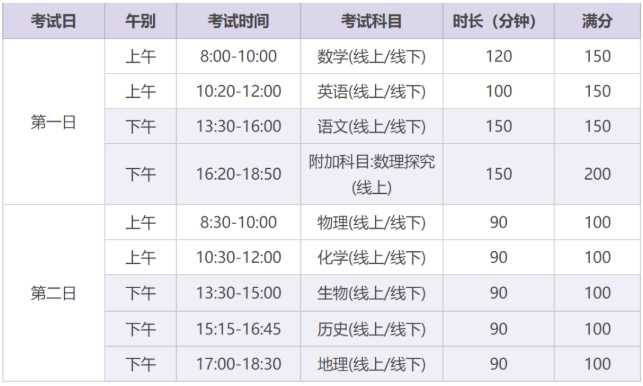 考试安排变化
