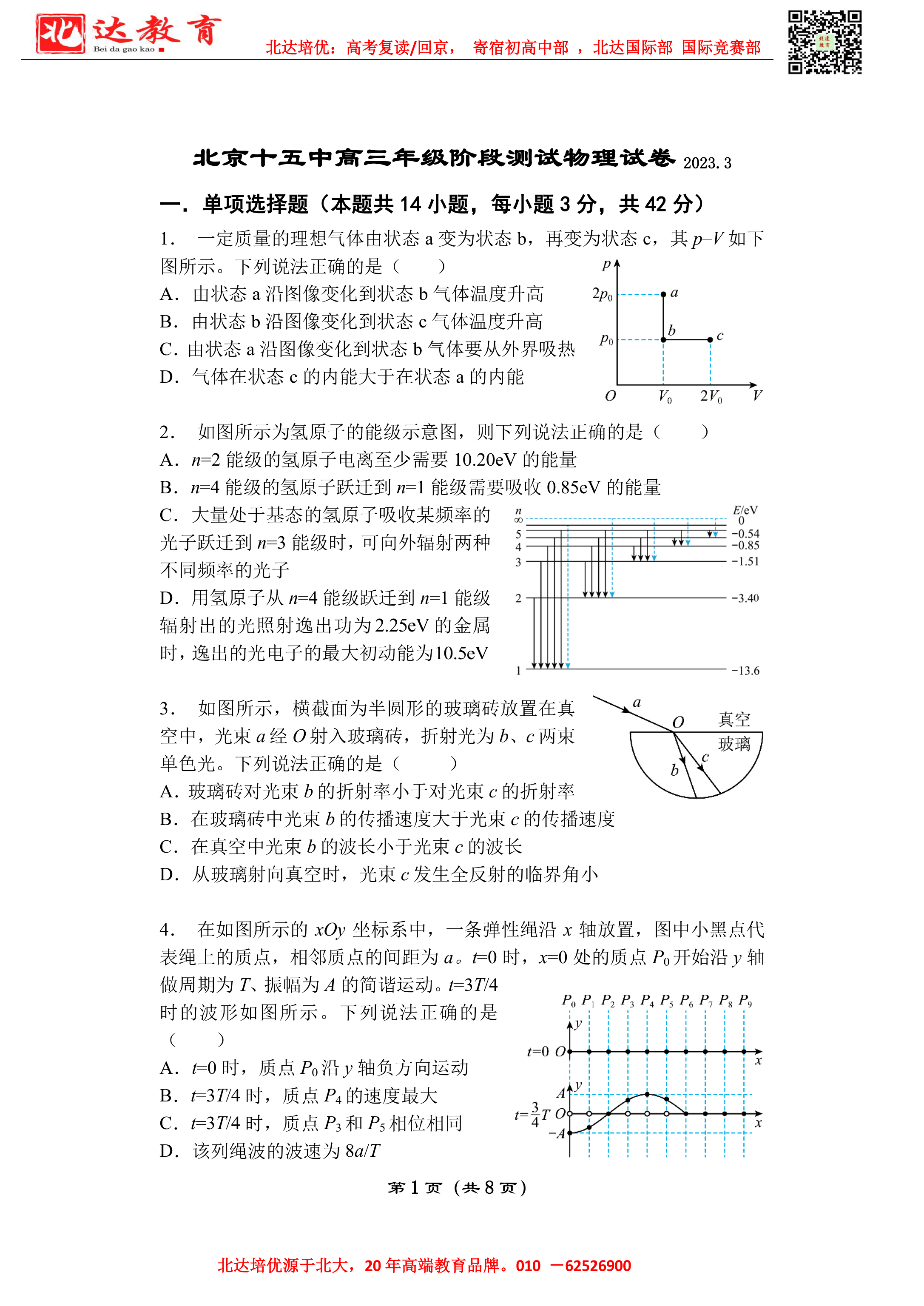2023北京各区高三3月月考正进行中,北达高考复读学校整理了2023北京十五中高三3月月考物理试题及答案,同学们可以在线下载学习!