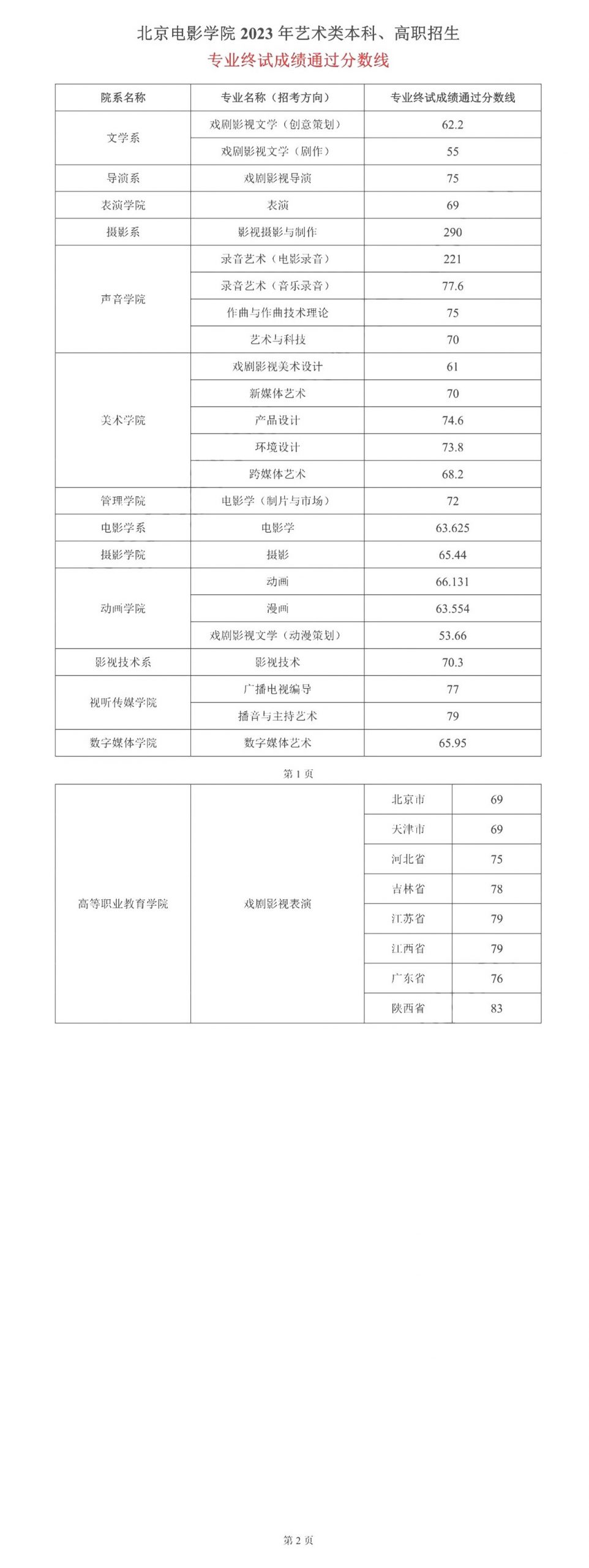 北京电影学院关于2023年艺术类本科、高职招生专业终试成绩查询的通知