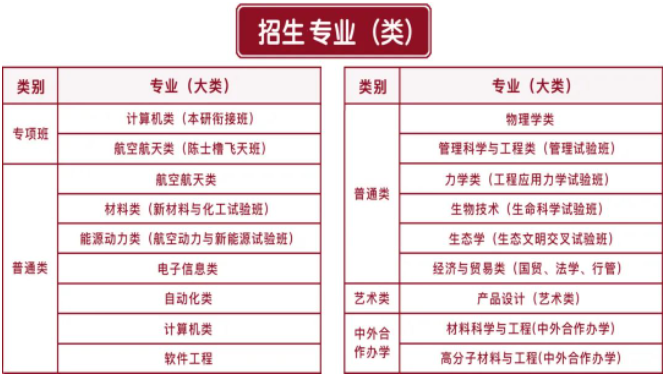 学校在京投放专业主要有航空航天类、材料类、自动化类、电子信息类、计算机类、能源动力类、物理学类以及中外合作办学等,均为学校优势学科专业。
