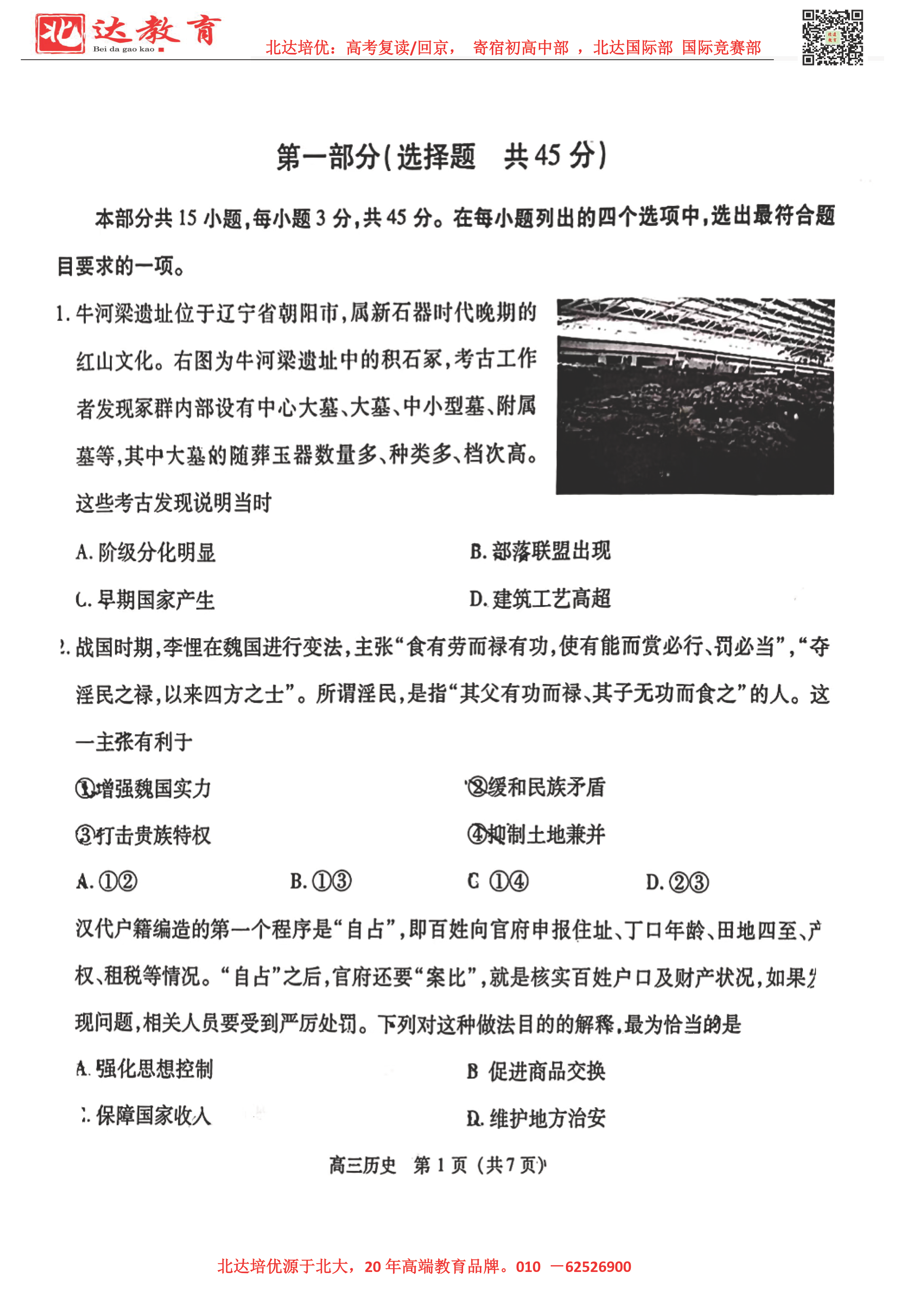 2023年北京丰台区高三二模考试预计于4月底进行。为了方便同学们查找相关试题及答案,北达高考复读学校整理了2023年北京丰台区高三二模历史试题及答案,附高清电子版,欢迎为大家下载分享~