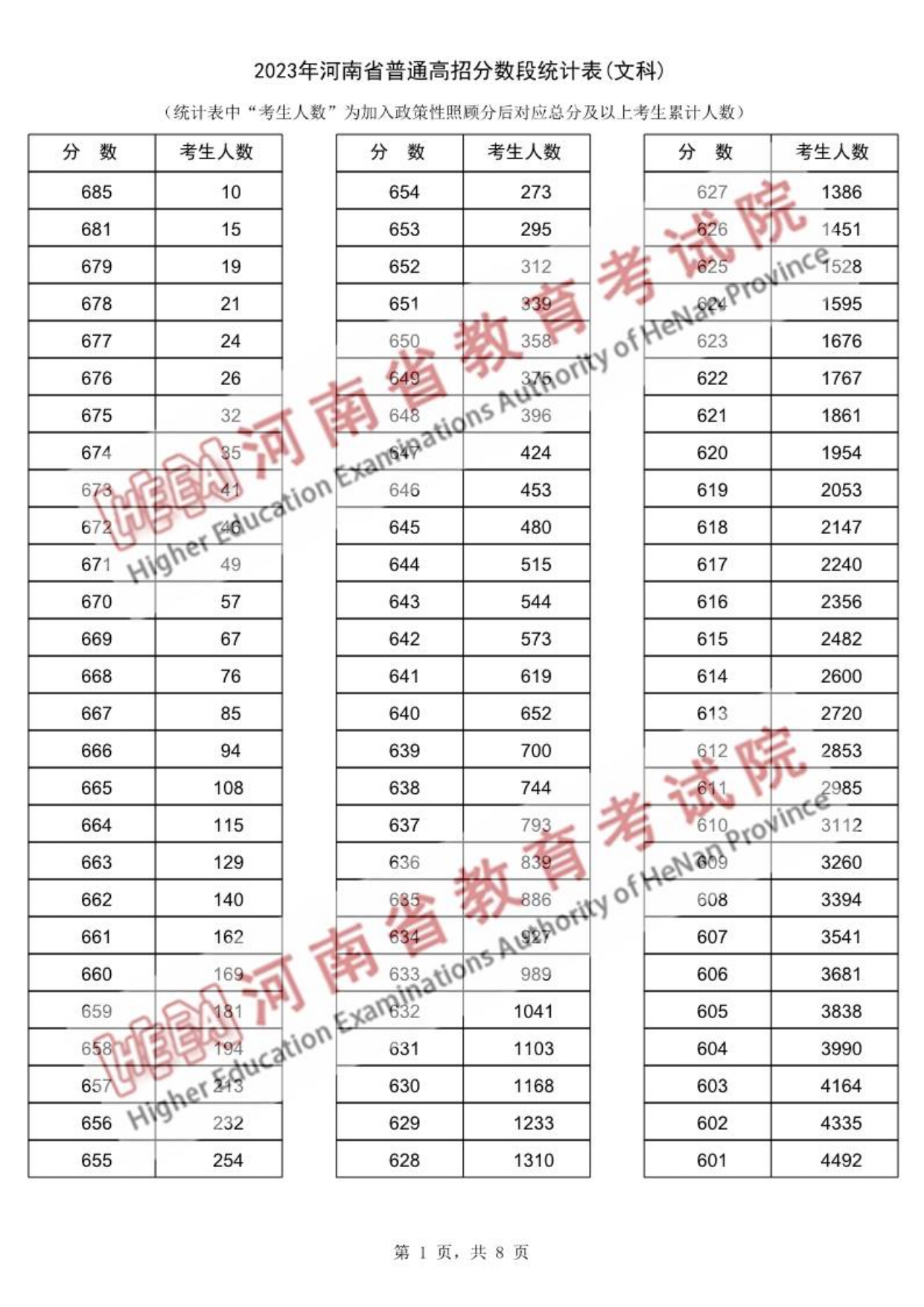 2023年6月25日,河南省2023年全国普通高校各类招生录取最低控制分数线及高考一分一段表公布。本文整理了河南高考文科类一分一段表,供查看。