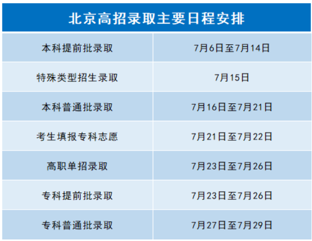 7月19日—8月1日 | 本科普通批次院校录取(包括2次征求志愿) |