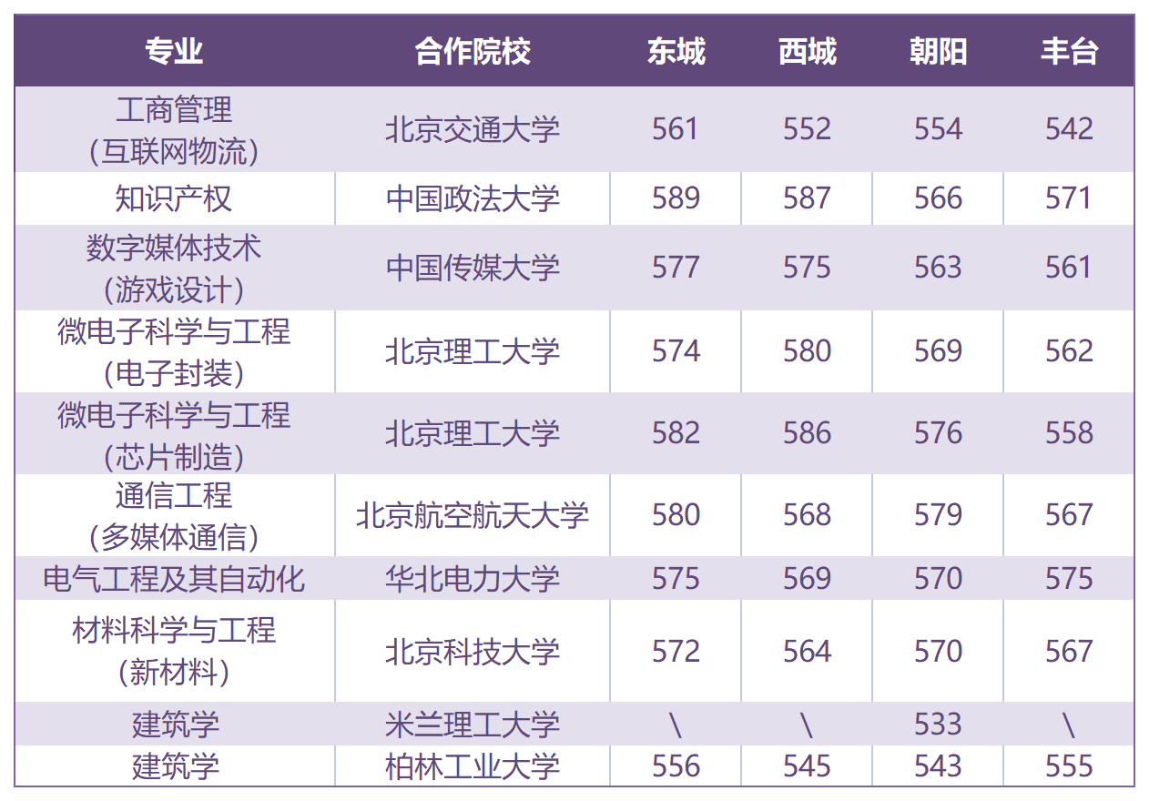 北方工业大学2023年双培外培计划在本科提前批普通类B段录取,目前录取已结束,北达复读学校整理了双培外培计划各专业录取分数,提供给新一届考生参考: