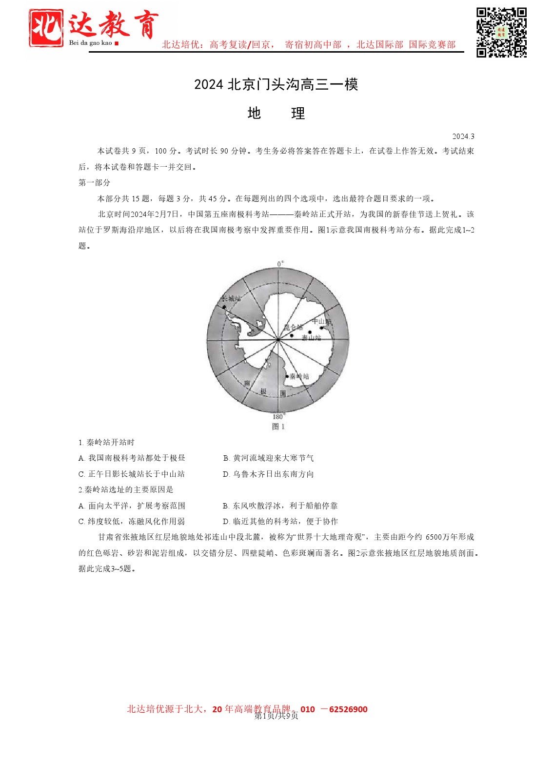 2024年北京门头沟区高三一模开考,北达教研组收集并整理了2024北京门头沟区高三一模历史试卷含答案,分享给同学们。 导读推荐:2024年北京各区高三一模汇总 北京北达全日制学校:中高考复读,外地回京,艺考…
