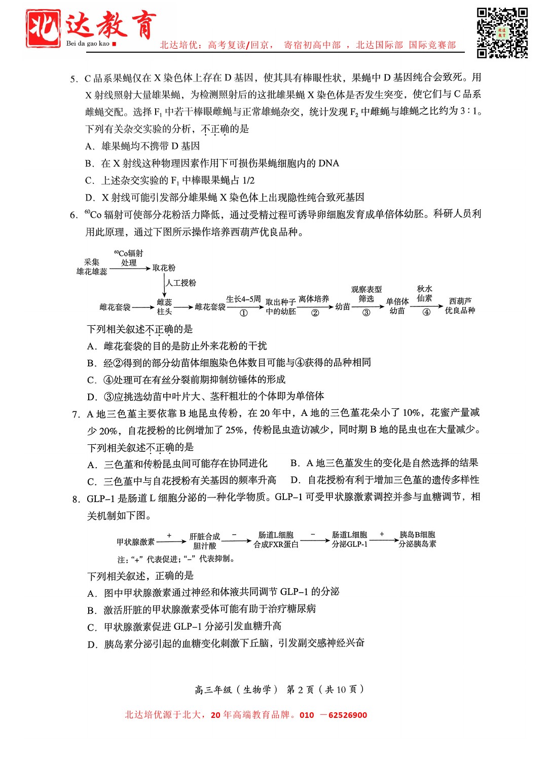 2024年北京海淀区区高三一模开考了,北达教研组收集并整理了2024北京海淀区高三一模生物试卷及答案,分享给同学们。 导读推荐:2024年北京各区高三一模汇总 北京北达全日制学校:中高考复读,外地回京,艺考…