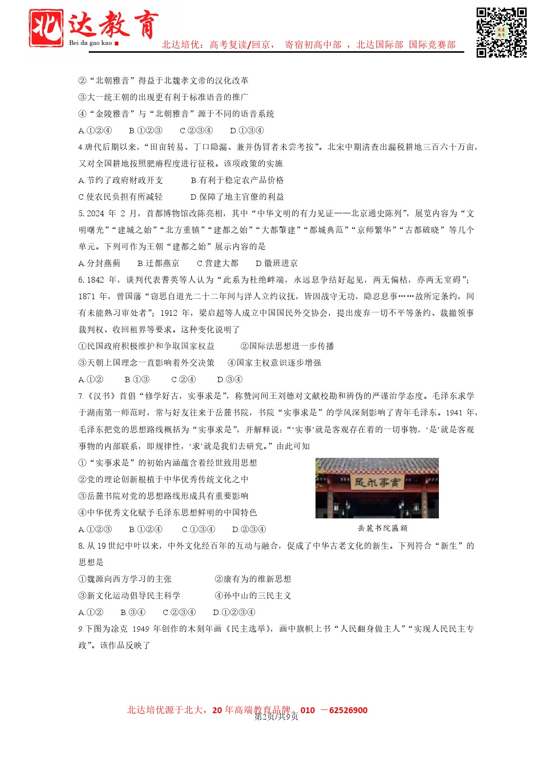 2024年北京朝阳区高三一模4月7日开考,北达教研组收集并整理了北京朝阳2024年高三一模历史试题及答案,分享给同学们。