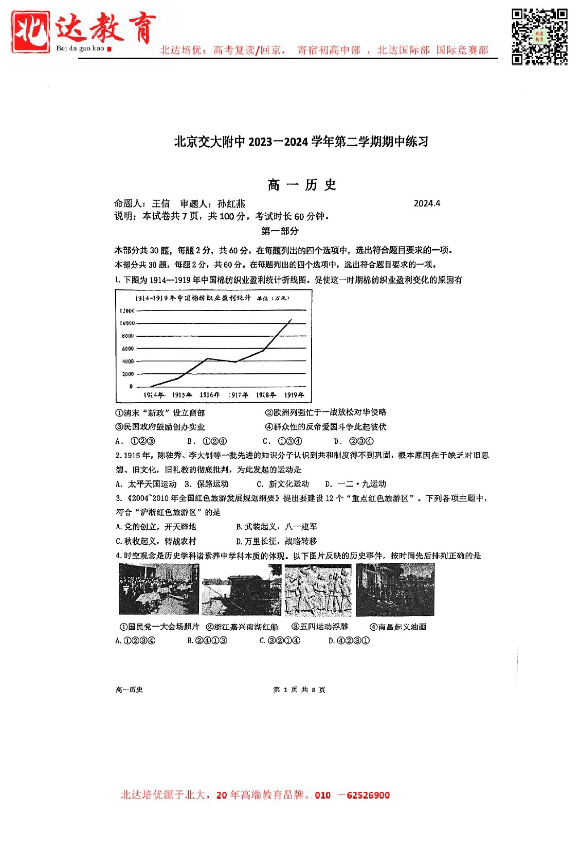 2024年北京交大附中高一(下)期中开考,北达教研组整理了2024北京交大附中高一(下)期中历史试卷,分享给同学们。 导读推荐:2024北京各区高一(下)期中试题及答案汇总 北京北达全日制学校:中高考复读,外…