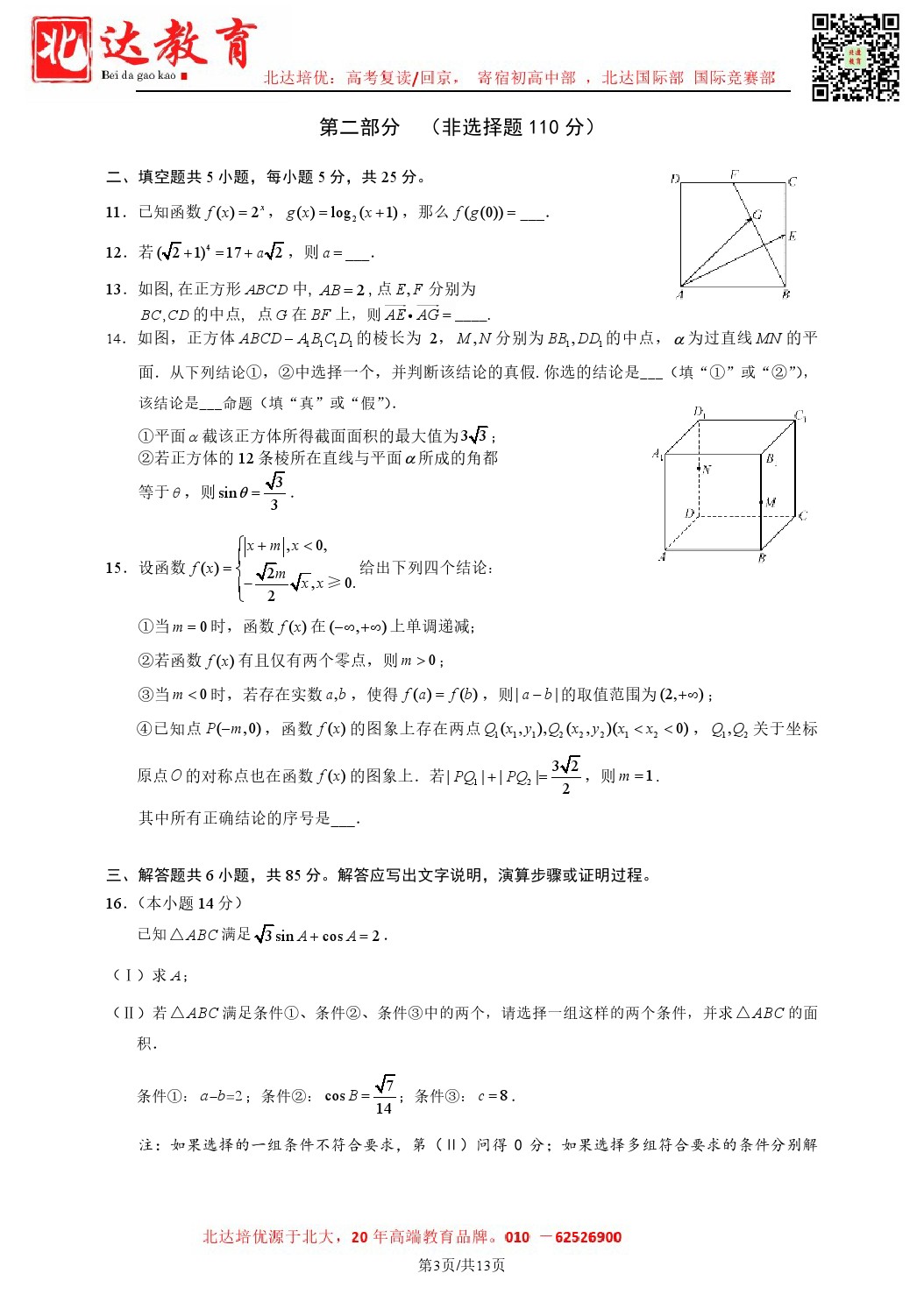 2024年北京丰台高三二模开考,北达教研组收集并整理了2024北京丰台高三二模数学试卷含答案,分享给同学们。 导读推荐:2024年北京各区高三二模试题及答案汇总 北京北达全日制学校:中高考复读,外地回京,艺…