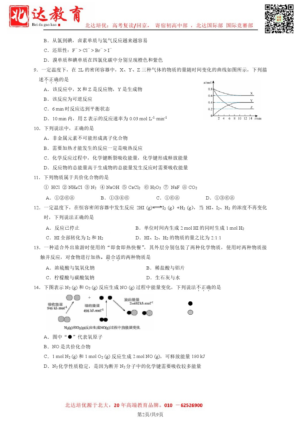 2024年北京丰台高一(下)期中开考,北达教研组整理了2024北京丰台高一(下)期中化学(A卷)试卷含答案,分享给同学们。 导读推荐:2024北京各区高一(下)期中试题及答案汇总 北京北达全日制学校:中高考复读…