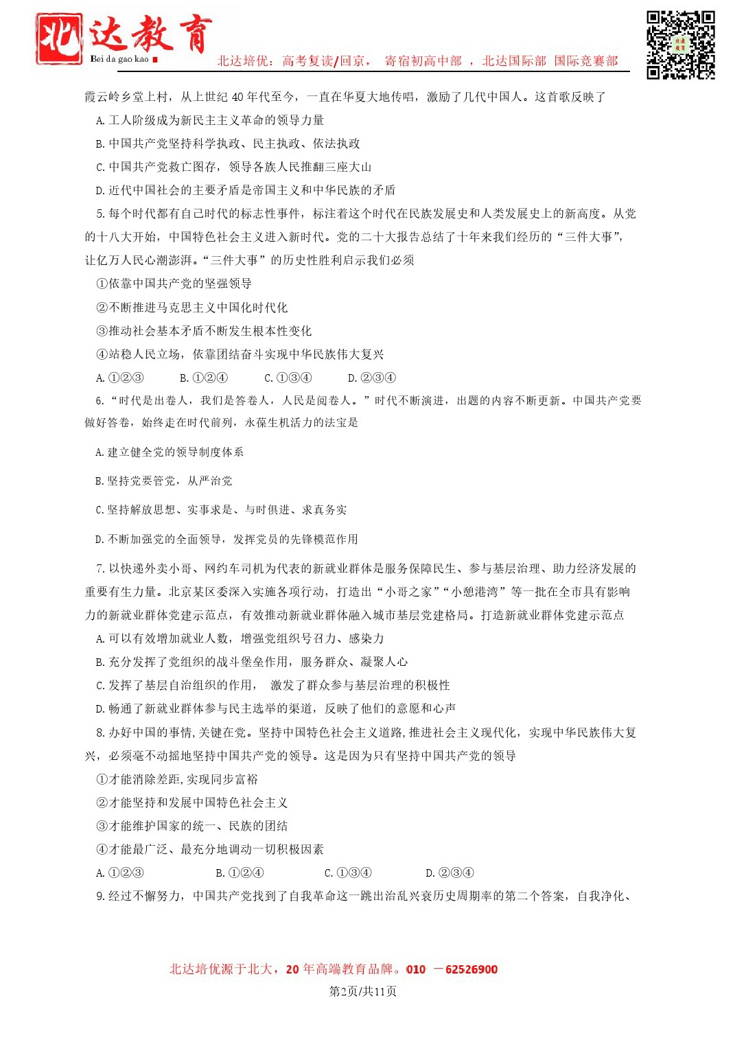 2024年北京丰台高一(下)期中开考,北达教研组整理了2024北京丰台高一(下)期中政治(B卷)试卷含答案,分享给同学们。