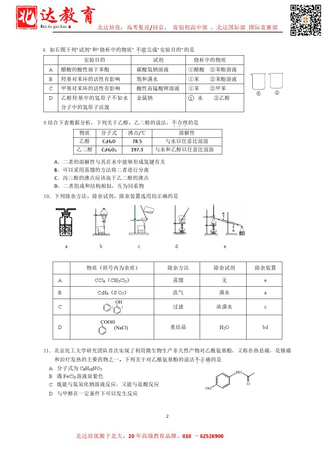 2024年北京交大附中高二(下)期中开考,北达教育整理了2024北京交大附中高二(下)期中化学试卷,分享给同学们。
