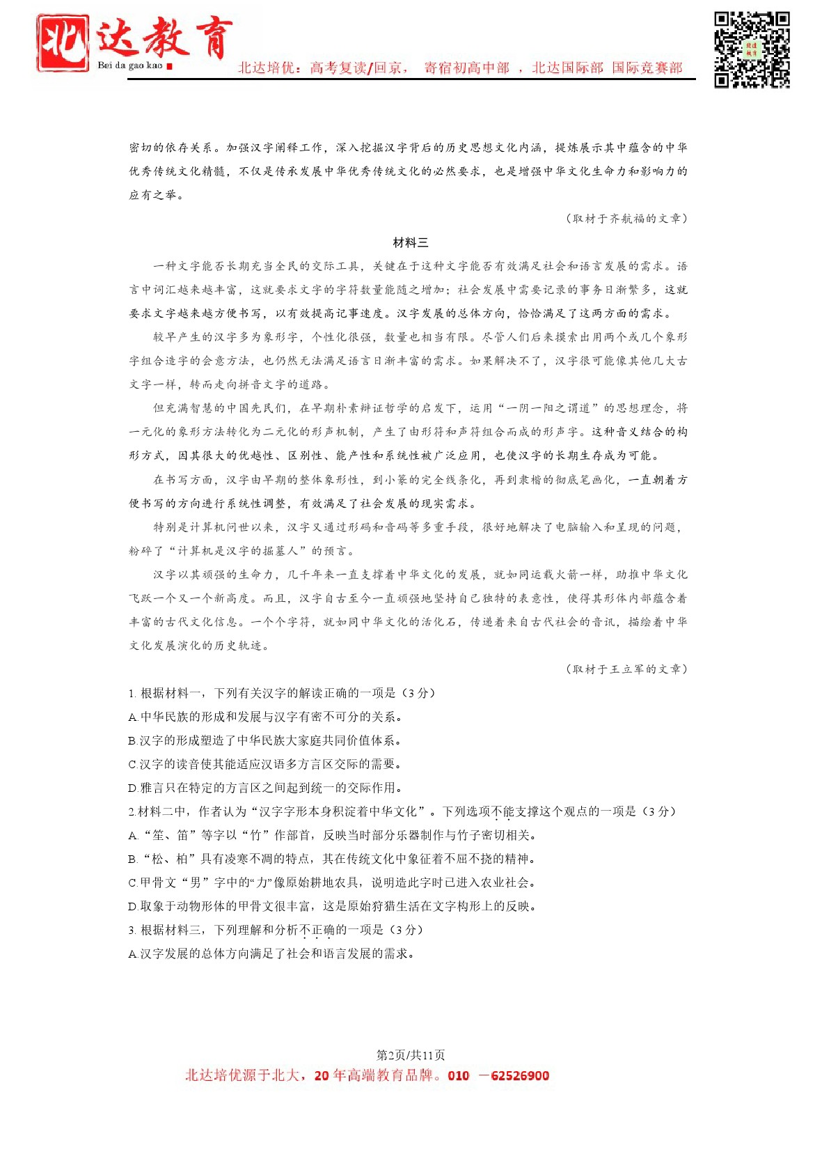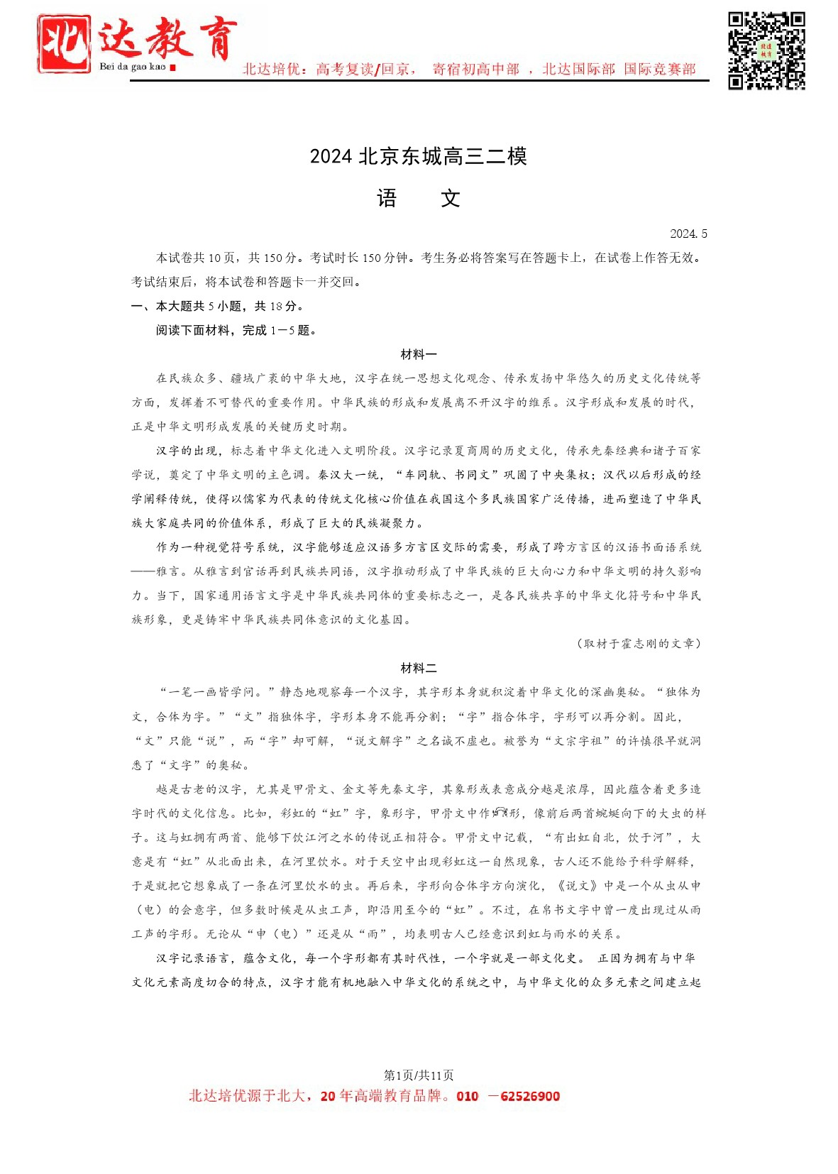 2024年北京东城高三二模开考,北达教研组收集并整理了2024北京东城高三二模语文试卷及答案,分享给同学们。