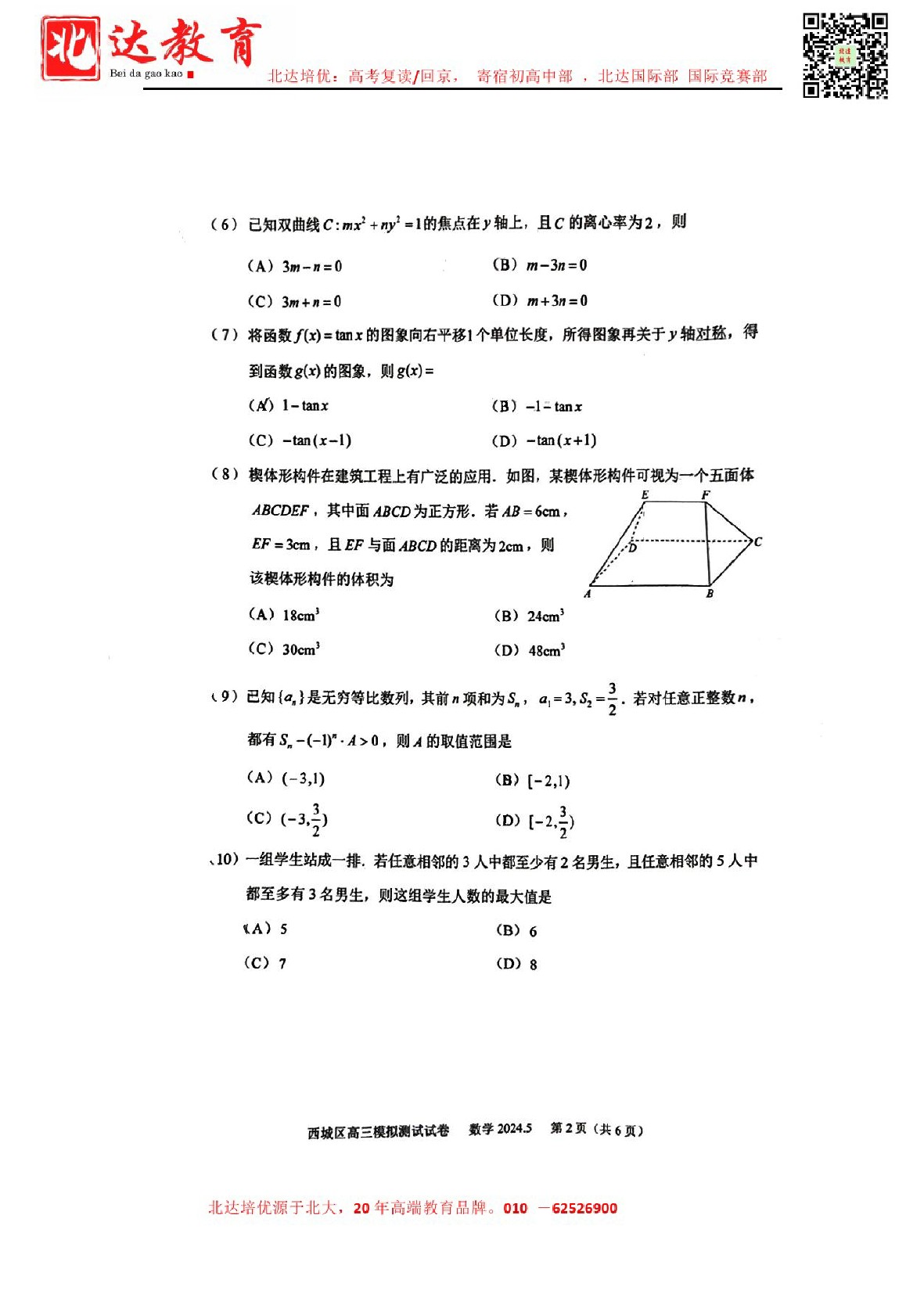 2024年北京西城高三二模开考,北达教研组收集并整理了2024北京西城高三二模数学试卷及答案,分享给同学们。 导读推荐:2024年北京各区高三二模试题及答案汇总 北京北达全日制学校:中高考复读,外地回京,艺…