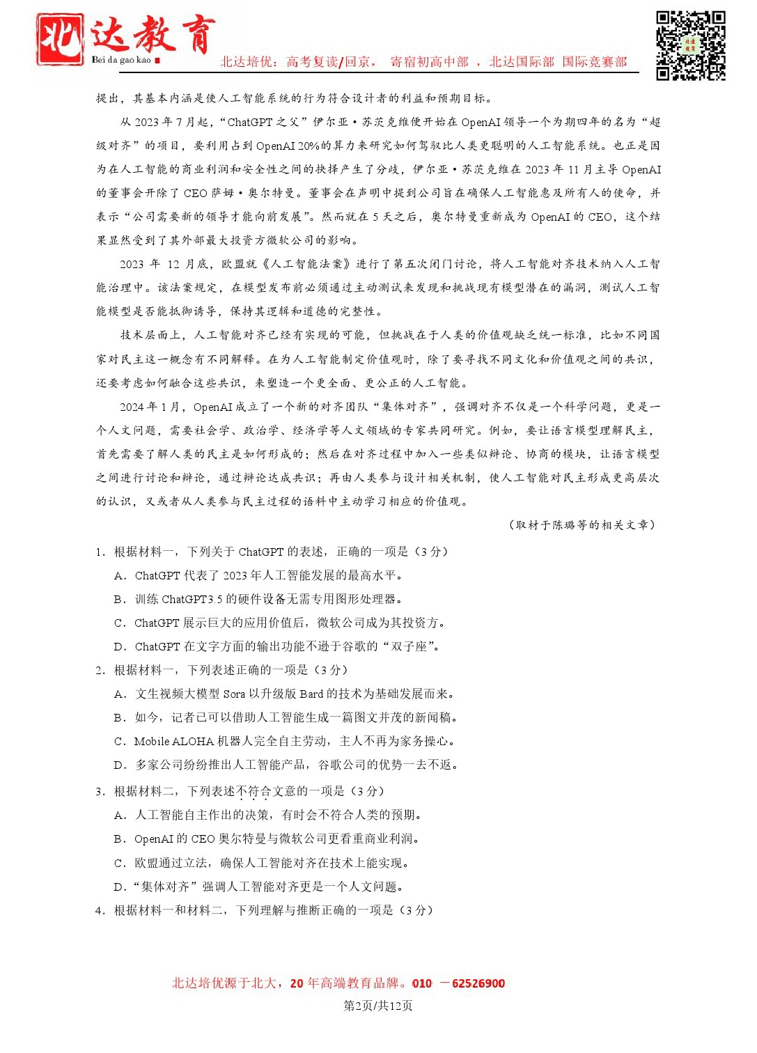 2024年北京西城高三二模开考,北达教研组收集并整理了2024北京西城高三二模语文试卷及答案,分享给同学们。