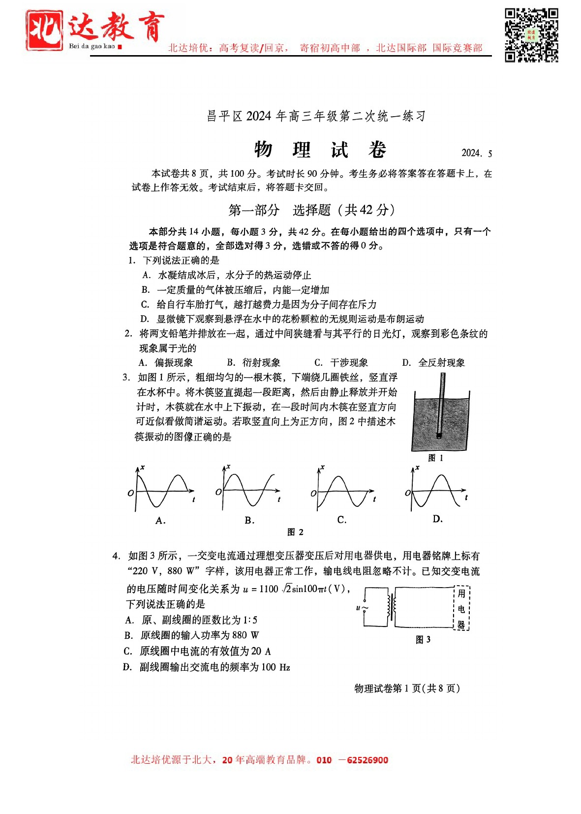 2024年北京昌平高三二模开考,北达教研组收集并整理了2024北京昌平高三二模物理试卷及答案,分享给同学们。 导读推荐:2024年北京各区高三二模试题及答案汇总 北京北达全日制学校:中高考复读,外地回京,艺…