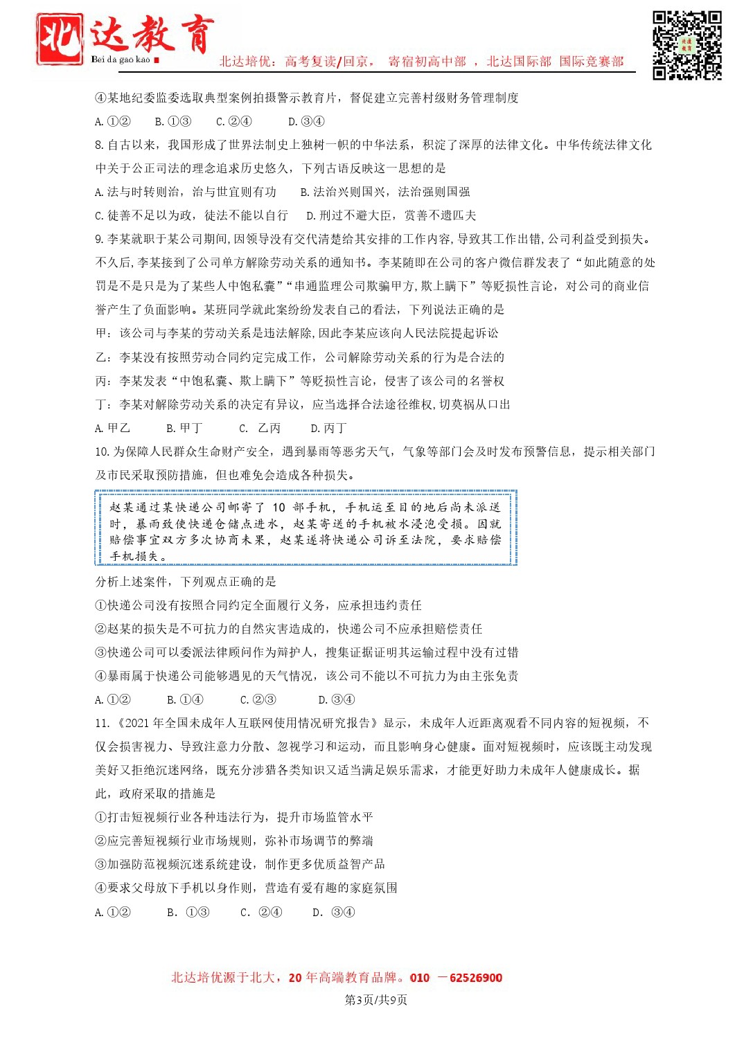 2024年北京昌平高三二模开考,北达教研组收集并整理了2024北京昌平高三二模政治试卷及答案,分享给同学们。