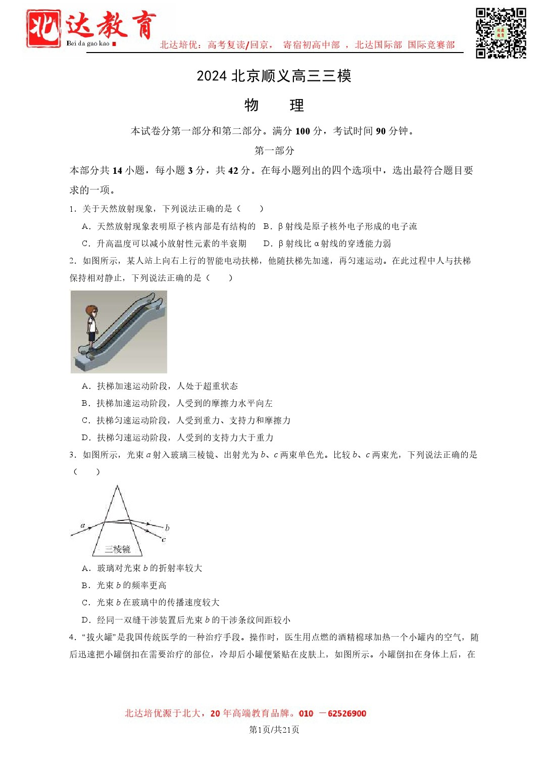 2024年北京各区高三三模陆续进行中,北达教研组收集并整理了2024北京顺义高三三模物理试卷含答案,分享给同学们。