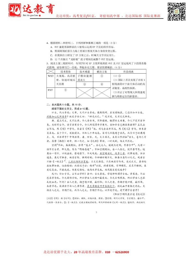 2024年北京各区高三三模陆续进行中,北达教研组收集并整理了2024北京北大附中高三三模语文试卷含答案,分享给同学们。 导读推荐:2024年北京高三三模试题及答案汇总 北京北达全日制学校:中高考复读,外地回…