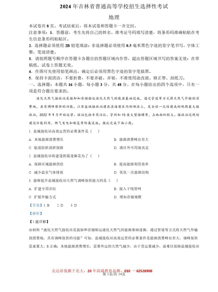 2024高考考试已结束,为了方便同学们查找高考试题及答案,我们特意整理了2024黑吉辽高考地理试题及答案,分享给同学们。详情如下: 北京北达全日制学校:中高考复读,外地回京,艺考生文化课★咨询电话:400-6…