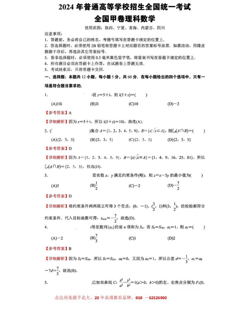 2024高考考试已结束,为了方便同学们查找高考试题及答案,我们特意整理了2024全国甲卷理科数学试题及答案,分享给同学们。详情如下: 北京北达全日制学校:中高考复读,外地回京,艺考生文化课★咨询电话:400…