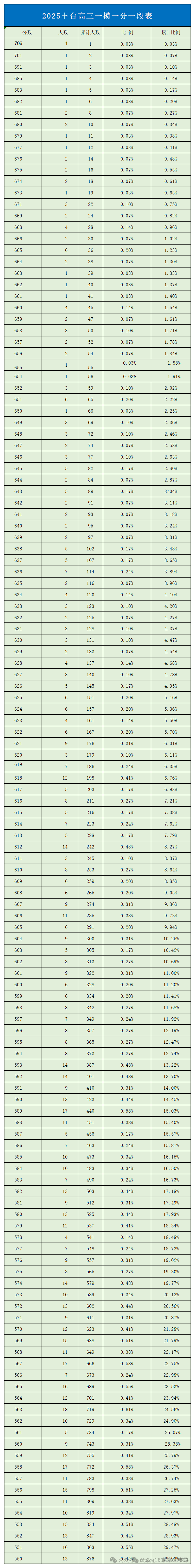 2025丰台区高三一模一分一段表(网传版),以下是北达教研组为大家整理的内容详情,一起来看: 相关推荐:北京各区2025高三一模区排名、一分一段表汇总 北京北达全日制学校,中高考复…