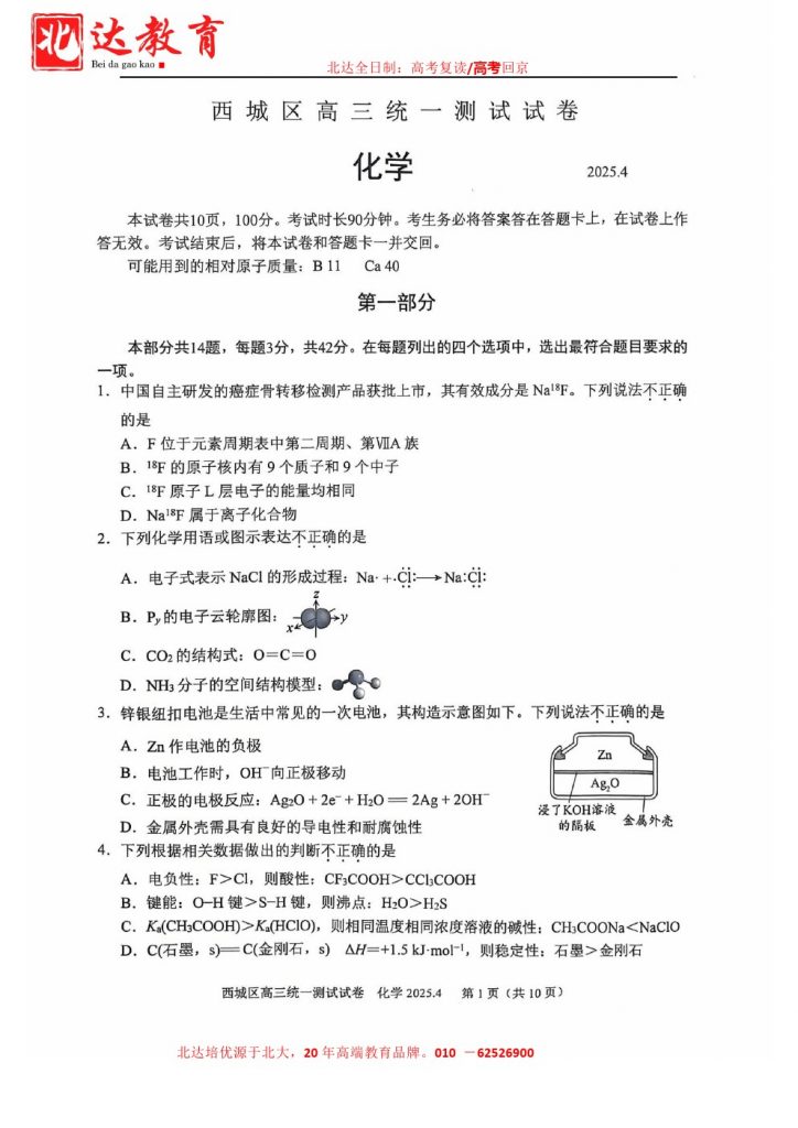 北京2025高三一模正在陆续进行中,为方便大家对答案、下载练习等小编给大家搜集了2025北京西城区高三一模化学试题及答案,需要的小伙伴赶紧下载练习起来吧: 北京北达全日制学校,中高…