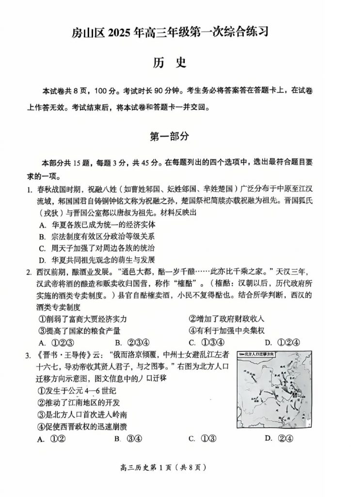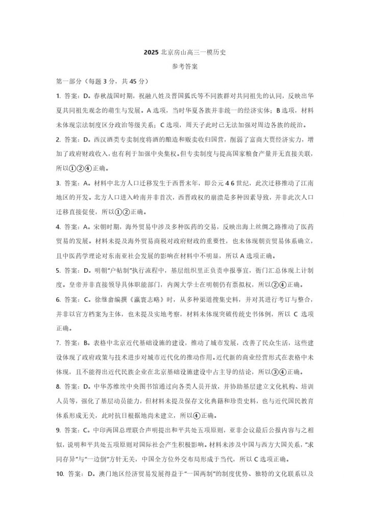 北京2025高三一模正在陆续进行中,为方便大家对答案、下载练习等小编给大家搜集了北京房山区2025高三一模历史试题及答案,需要的小伙伴赶紧下载练习起来吧: