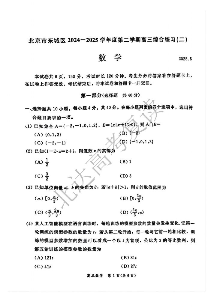 北京2025高三二模正在陆续进行中,为方便大家对答案、下载练习等,小编给大家搜集了2025北京东城区高三二模数学试题及答案,需要的小伙伴赶紧下载练习起来吧: