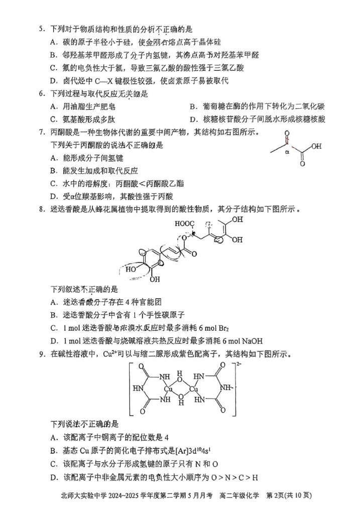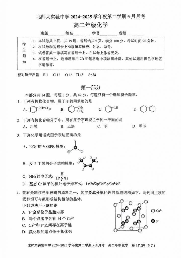 2025年北京各中学高二5月月考已结束,小编整理了北师大实验中学2025高二5月月考化学试题及答案,分享给大家。