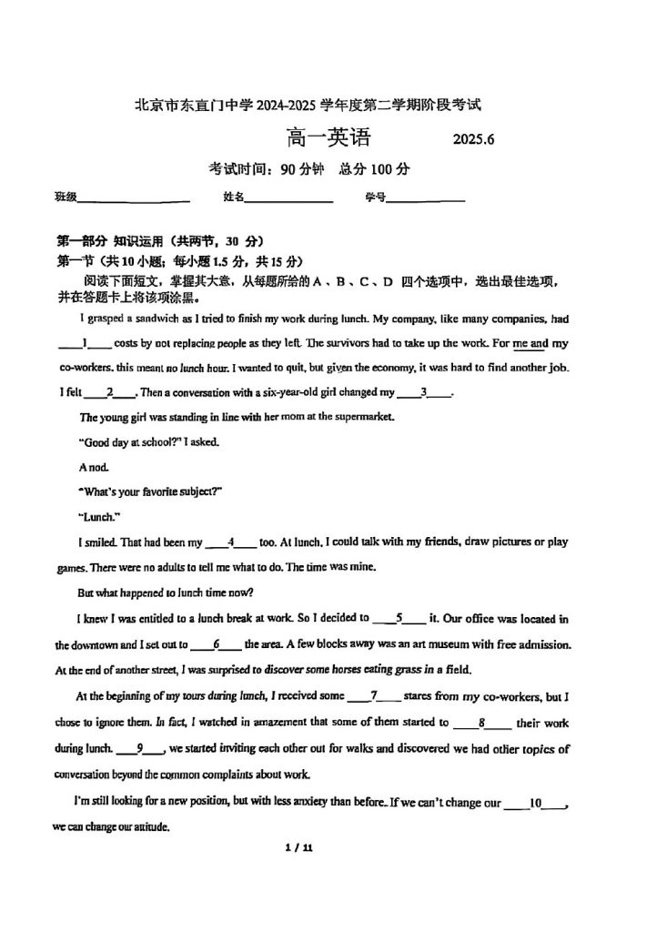 2025年北京各中学高一6月月考已结束,小编整理了北京东直门中学2025年高一6月月考英语试题,分享给大家。