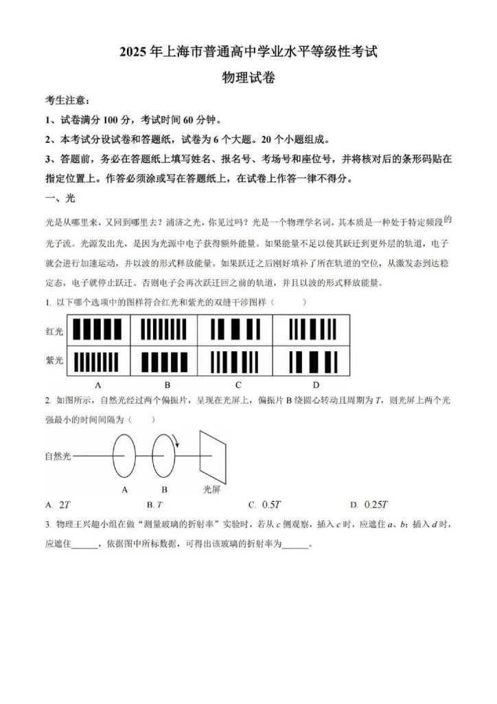 试题下载:2025年上海高考真题及答案汇总