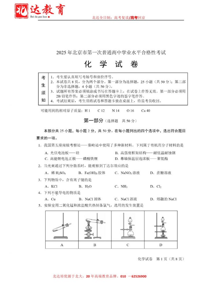 2025北京高中第一次合格考化学试题及答案 //m.cfjuqp.com/gaokao/70626.html Wed, 16 Apr 2025 01:51:11 +0000 //m.cfjuqp.com/gaokao/?p=70626 2025北京高中第一次合格考已结束,为了方便同学们了解各科试题情况,北达教研组整理了2025北京高中第一次合格考化学试题及答案,需要的小伙伴赶紧下载练习起来吧: