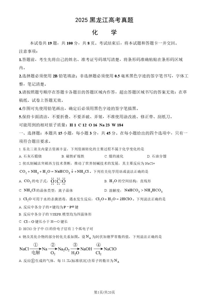 2025黑龙江高考真题化学试题及答案 //m.cfjuqp.com/gaokao/72170.html Mon, 16 Jun 2025 03:20:15 +0000 //m.cfjuqp.com/gaokao/?p=72170 2025年全国各省市高考考试已结束,北达教研组整理了2025黑龙江高考真题化学试题及答案,详情如下: